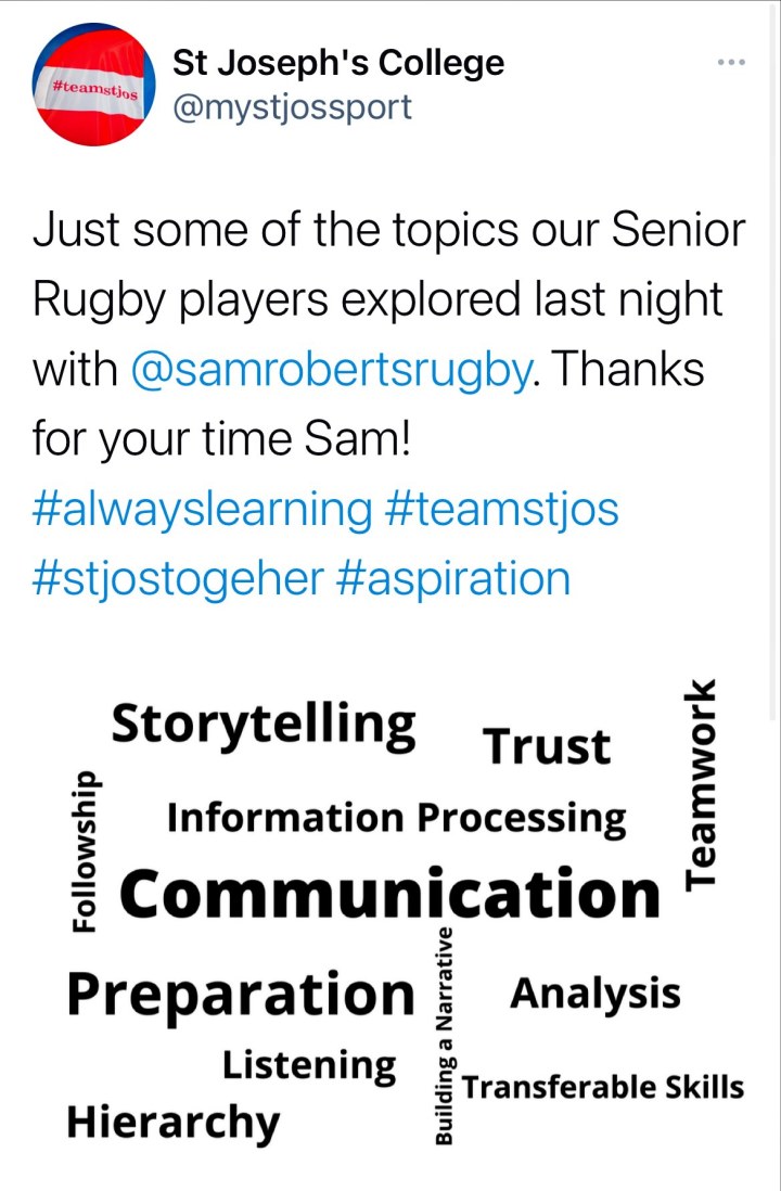 “This was a very good and inspirational talk as it gave a showed what skills you need later in life and in general with any sport. Not just rugby. There were tips and detail in his talk about how communication can help around everyday life”